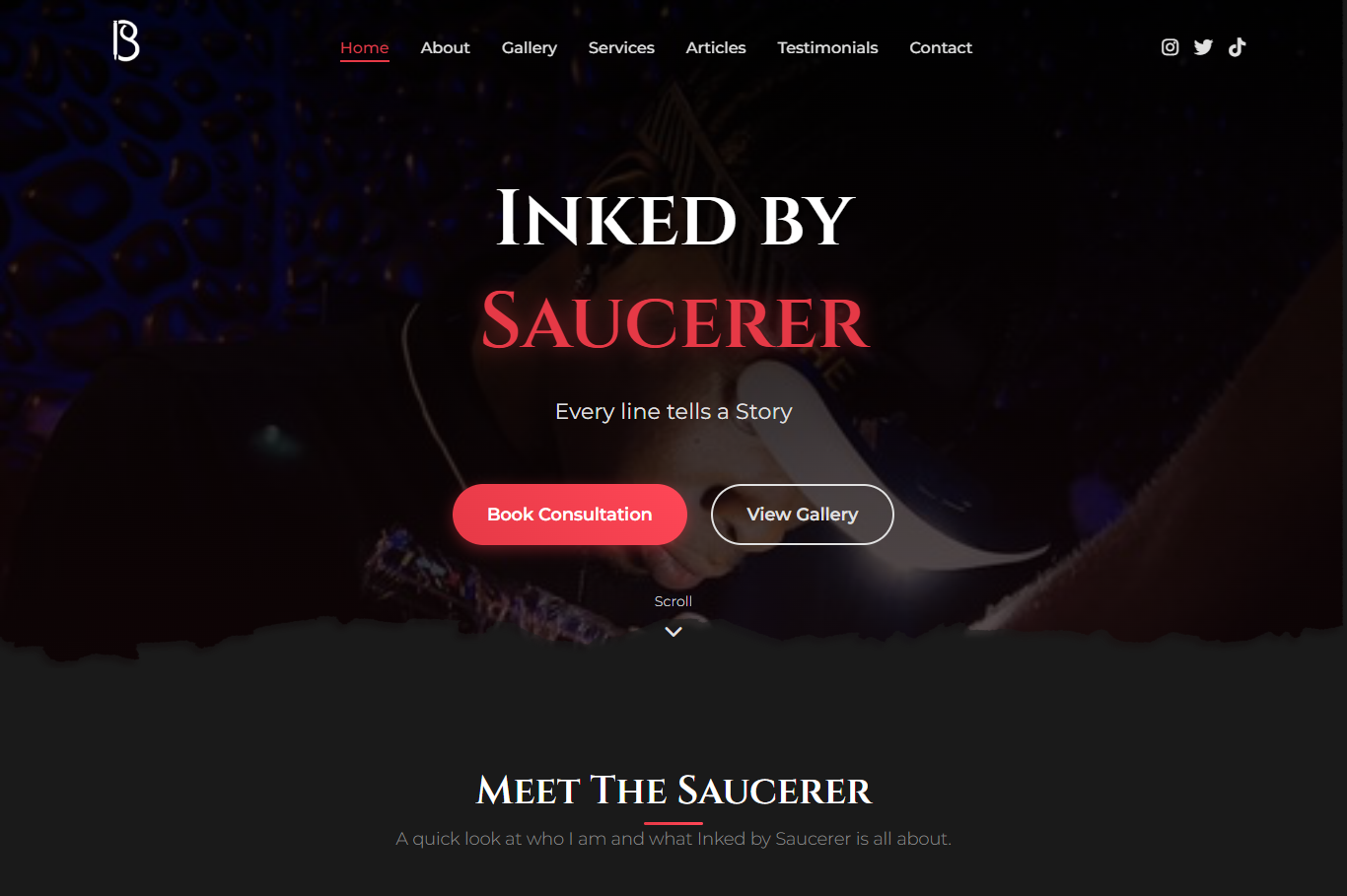 Inked by Saucerer needed a site that captured their skill & simplified booking. A custom banner reinforced their identity.